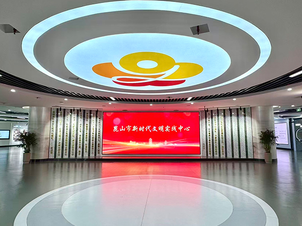 昆山市新时代文明实践中心位于科博中心东区三楼,面积2200平方米。中心集管理、研发、展示、培训交流、线上线下互动、理论学习、未成年人教育、活动排练等八项功能于一体,并设有志愿者总会(志愿者之家),包括昆台融情志愿服务队在内的30多家有影响的志愿服务团队进驻集中办公。